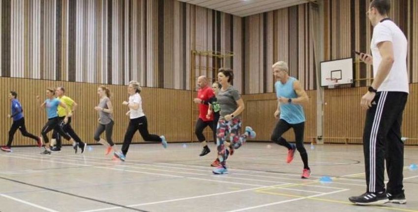 Eine umfangreiche „Schuhmesse“ gab Möglichkeit, für sich den passenden Laufschuh zu finden. Dabei konnten die Teilnehmer die Testexemplare intensiv testen. Seitens des Präsidiums freute sich Till Pleuger, als zuständiger Vizepräsident, über den hohen Zuspruch: „Wir hätten noch deutlich mehr Plätze vergeben können“, erläuterte er. „Aber wir wollen den Läufern die Chance geben, dass die Referenten intensiv auf sie in der Praxis eingehen.“ Deshalb sei die Deckelung der Teilnehmerzahl notwendig gewesen. Die Läufer wiederum nahmen das gerne an und gingen ebenso gerne an ihre Leistungsgrenze: Shuttle Run Beep oder ein Sprint-Testverfahren lockten etliche Schweißperlen auf so manche Stirn. Neben Dr. Burger und Sterzing brachten Barlo Hillen (Doktorand Abteilung Sportmedizin Uni Mainz) sowie Stephan Schweiger (Leiter Lex Laufexperten) den Läufern die Übungen näher.