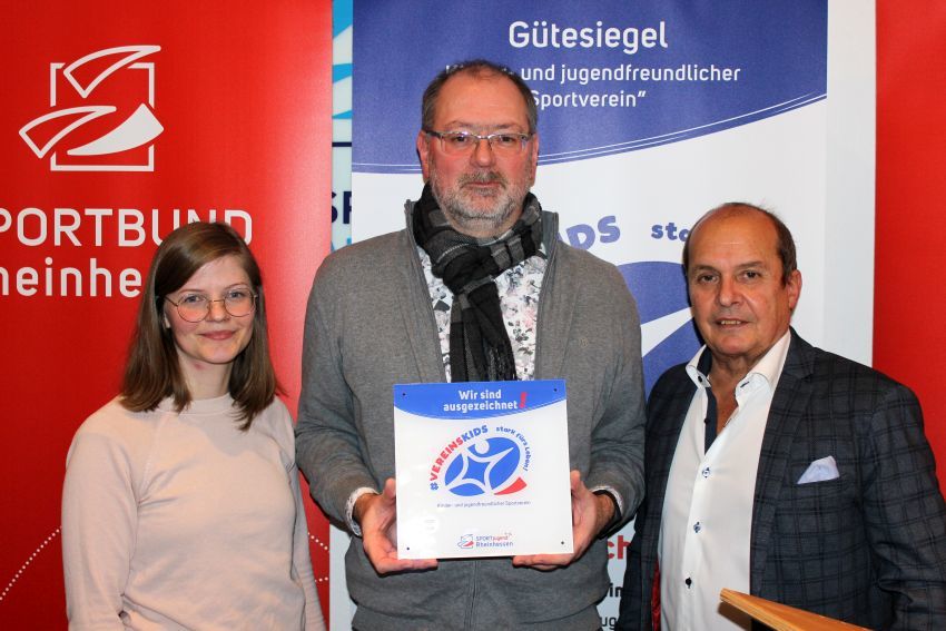 Dann kam es zu einer Premiere: Der TV 1863 Leiselheim ist der erste Verein, der das neue Gütesiegel der Sportjugend Rheinhessen an sein Vereinsheim hängen darf und ab sofort als „kinder- und jugendfreundlicher Sportverein“ auf sich aufmerksam machen kann. „Der TVL hat alle Kriterien, wie zum Beispiel eine Jugendordnung, eine Jugendvertretung, ein Kinderschutzprogramm oder entsprechende Angebote für die Zielgruppe bestens erfüllt“, begründete Nadine Nagel, die stellvertretend für den Sportjugend-Vorstand die Ehrung an TVL-Vizepräsident Peter Rickes überreichte.