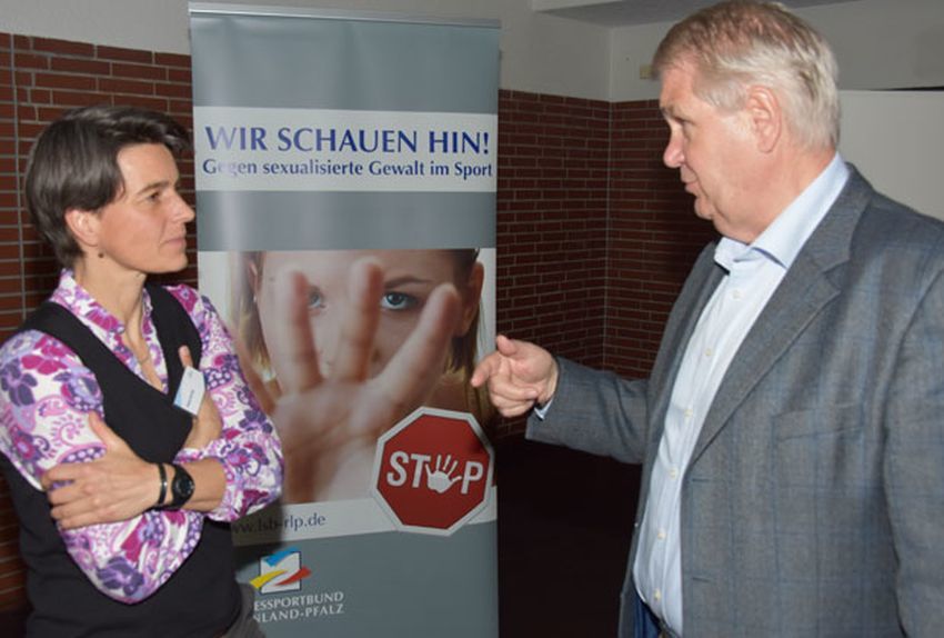 Diese erschreckende Zahl nannte die wissenschaftliche Referentin Meike Schröer (links) von der DOSB-Führungsakademie bei der Schulungsmaßnahme zur Qualifizierung der Projektteilnehmer im Rahmen des von LSB, Sportbund Rheinhessen sowie den Sportjugenden Pfalz und Rheinland initiierten Gemeinschaftsprojekts „Wir schauen hin – keine Chance für sexualisierte Gewalt“ mit knapp 60 Vorständlern und anderen Funktionsträgern aus 22 Vereinen, fünf Verbänden und sieben Landesleistungszentren beim Mombacher Turnverein.