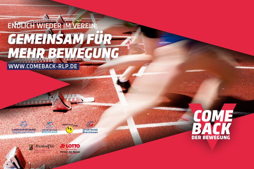 Durch die COMEBACK-Kampagne soll dem nun entgegengewirkt werden. In #SPORTRHEINLANDPFALZ startet der Landessportbund Rheinland-Pfalz gemeinsam mit seinen regionalen Sportbünden Pfalz, Rheinhessen und Rheinland daher die Aktion „#Comeback der #Bewegung“. Ausgestattet mit finanziellen Fördermitteln des Ministeriums des Innern und für Sport steht die (Rück-)Gewinnung von Mitgliedern und Übungsleiter*innen in rheinland-pfälzischen Vereinen und Verbänden im Fokus.