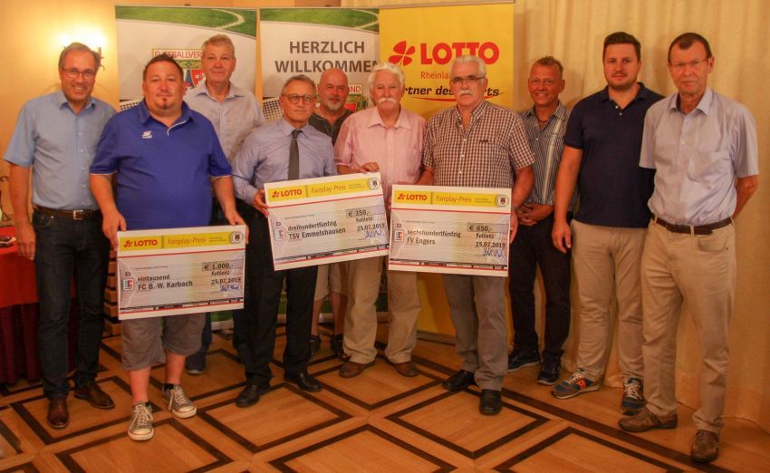 Die drei fairsten Teams der abgelaufenen Oberliga-Saison kommen aus dem FV Rheinland – dies sind FC B.-W. Karbach (1000.- €), FV Engers (650.- €) und TSV Emmelshausen (350.- €).