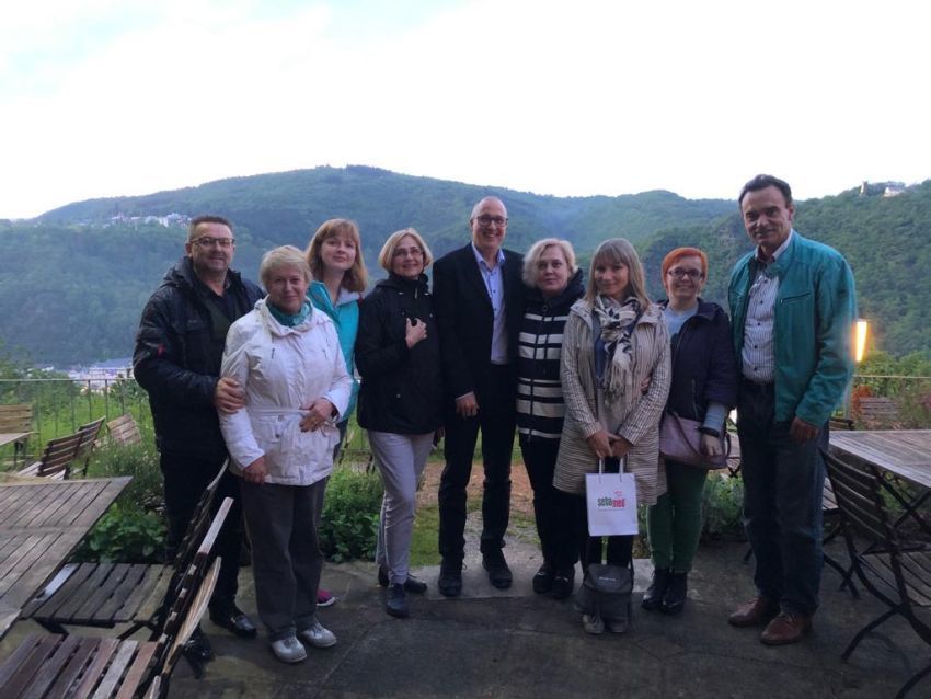 Die russische Delegation wurde angeführt von der Direktorin der Schule, Elena Nikandrova (4. v.r.). Die Sportjugend Rheinland-Pfalz wurde bei den Absprachen zum Vertrag angeführt durch das Mitglied des Leitungsteams, Vorsitzender der Sportjugend Rheinland, Ralph Alt (5. v.r.)