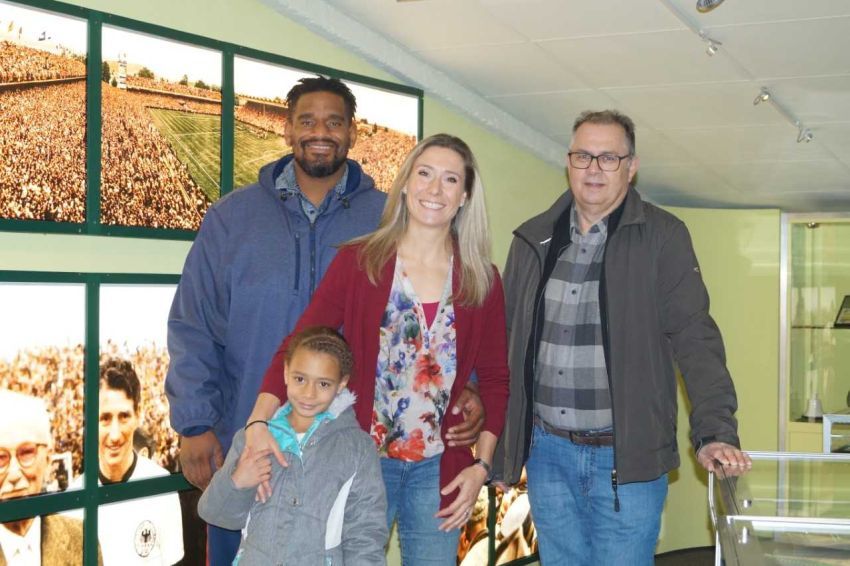 Regelmäßig besucht die heute in Oklahoma lebende Familie Green Katrins pfälzische Heimat. Dass nun auch ein Besuch in Pfälzischen Sportmuseum in Hauenstein möglich war, dafür sorgte der stellvertretende Geschäftsführer des Sportbundes Pfalz, Thomas Schramm (rechts), der mit dem Bruder von Katrin Green befreundet ist und über ihn den Kontakt herstellte. Zusammen mit Kurator Asmus Kaufmann vom Sportbund Pfalz gab es eine Sonderführung durchs Sportmuseum. Katrin Green zeigte sich beeindruckt von der Sammlung und musste nicht lang überlegen: Sie wird verschiedene Objekte aus ihrem bewegten Leben für die Dauerausstellung des Pfälzischen Sportmuseums zur Verfügung stellen. Green: „Das meiste liegt bei mir zu Hause eh nur im Schrank herum. Hier im Museum können die Besucher sie sehen und kommen dadurch auch mit dem Thema Behindertensport in Berührung.“